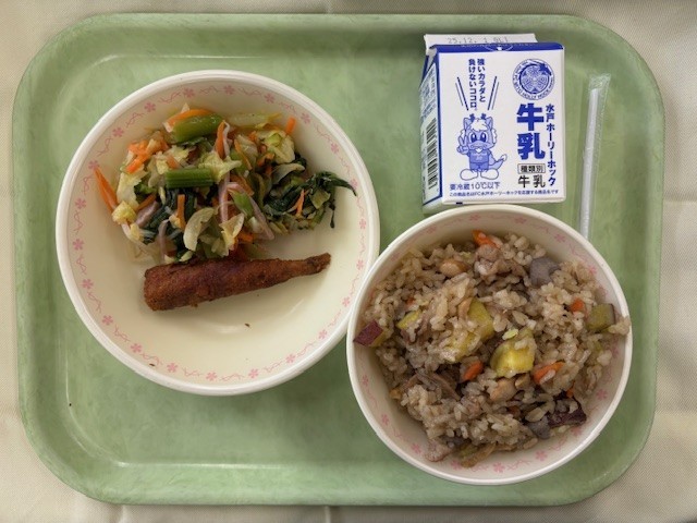 さつまいもは、ひたちなか市産で、今日は「栗かぐや」という品種が入りました。混ぜごはんにも合う、ほくほくしたさつまいもです。