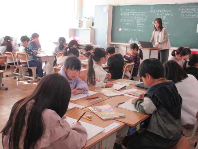 実物を目で見ること、やってみることが低学年では特に大切なことです。1年生、頑張っていました。