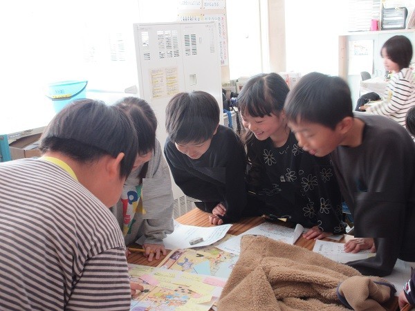 他のグループの書いたものを見ると「みんな、よく考えてるなあ」「新しいの発見した!」「冬の砂場って固いんだって」などたくさん話をしながら、新たな「冬」をどんどん書き入れていました。授業の終わりには、「しもばしらってどうしてできるんだろう」「雪あそびにはどんなものがあるか知りたい」など、次の時間に調べたいことも書いていました。「ぼく、生活科大好き!」と言っている子もいました。