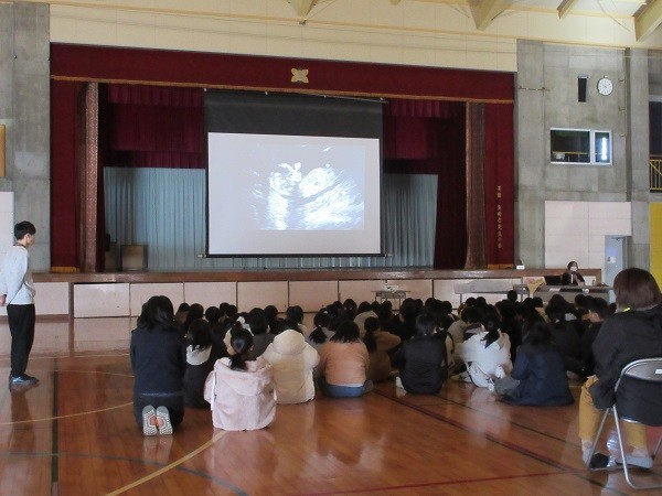 5年生と希望した保護者の方々を対象に、茨城県助産師会から講師の先生をお招きして「いのちの教育講演会」を行いました。