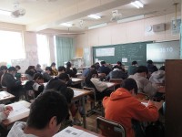昼休みにみんなが外で元気に遊んでいると、サイレンの音とともに、「原子力災害が発生しました。外にいる児童は昇降口で衣服をはらい、決められた場所で着替えましょう。」という放送が流れました。今日は、原子力災害対応の避難訓練です。外から校舎に入ると昇降口で衣服を払い、体操服に着替えました。放射性物質を中に持ち込まないためです。手洗い、うがい、顔洗いもしました。窓もドアも閉めます。