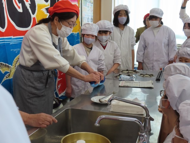 プラスチックを減らし、きれいな海を守るために私たちができることについてお話を伺ったあと、2組と4組がいわしを手開きして、いわしのつみれ汁を作りました。初めて丸々1匹の生の魚を触るという児童がほとんどで、内臓を取り出すことにびっくりしていましたが、上手に開くことができていました。お魚をおいしくいただくためには手間をかけなければいけないんですね。ぜひ、ご家庭でもチャレンジしてみてください。明日は1組と3組が実施します。よろしくお願いいたします。