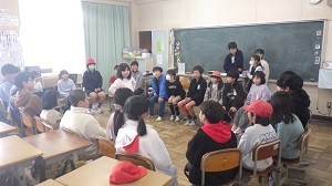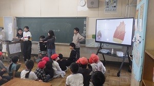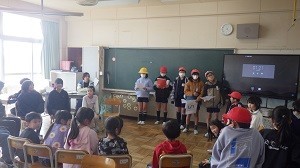 ロング昼休みにたてわり班活動をしました。いつもは6年生が中心にゲームなどを考えてくれましたが、今回は5年生が中心となって遊びました。5年生は、始めは「どきどきする」「このスライドを電子黒板にこれをうつさなきゃ」「音楽はどうやったら音が出るの?」など、緊張しながら準備をしていましたが、ゲームが始まるとしっかり仕切っていました。1年生から6年生まで楽しく活動できました。6年生は卒業しても、頼もしい5年生がいるから大丈夫ですね。