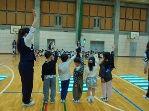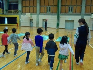 体育館で、安全に登下校するために、動画を見たり、実際に横断歩道の渡り方をやってみたりしました。