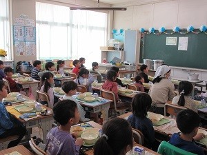 4/15(水)、いよいよ1年生の給食が開始されました。本日のメニューは「カレーライス」ということで、もりもりおかわりをしていました。