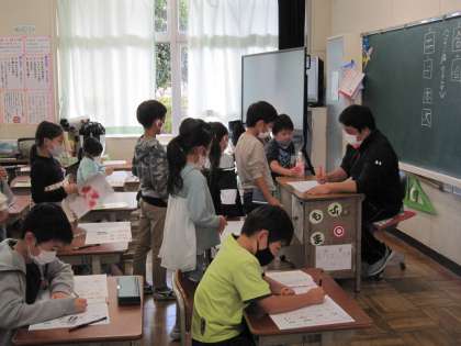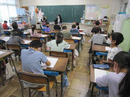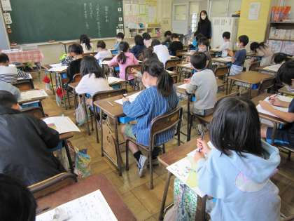 今日の5時間目の学習の様子です。2年生の教室では、国語(書き方)の学習をしていました。いつもと違うところは、4名の担任の先生が、別の教室で指導しているところです。学年全体で児童の学習や生活をみて、よりよい成長につなげていきます。児童たちも、新鮮な気持ちと緊張感をもって、取り組んでいます。