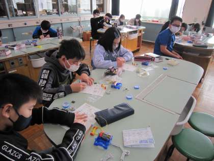 理科の学習の様子です。5年生は、電磁石について学んでいます。「電磁石の極を変えるには、どうすればよいだろうか」の学習課題を、実際にコイルと電池を組み合わせながら、実験に取り組みました。専門的な先生から学ぶ理科は、とても興味深く学習しています。