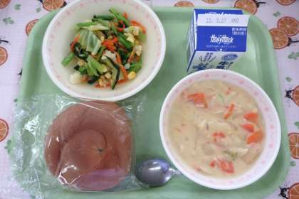 白菜のクリーム煮のとろみは白いんげんピューレと手作りホワイトルウでつけました。白菜の甘みが出ておいしかったです。