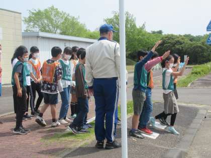 5月12日(木)、5年生も2つの班に分かれて交通公園で交通安全教室を行いました。高学年になりましたので、4年生以上に行動範囲が広くなりそうです。事故は一瞬にして起きてしまいますので、十分注意して自転車には乗りたいですね。また、登校班の班長になる児童もいるでしょうから、班員の面倒をよくみてくださいね。