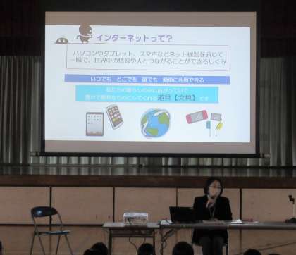本日,メディア教育指導員 矢口様を講師としてお招きし,「情報モラル教育講習会」が行われました。「インターネットを使う際のルールとネットが与える心の影響」について,ご講話をいただきました。子どもたちを取り巻くインターネットの危険性を知り,使う際の正しいルールについて学ぶことができました。一人一人が意識してトラブルを避け,上手に使いこなすスキルを身に付けてほしいです。