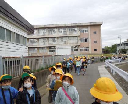 4月18日(火)、3年生が第1回目の学区探検に行きました。学区の北・東コースと西・南コースの2班に分かれての探検です。3年生になり、社会科の学習も始まりました。学校の周りはどのようになっているか、方位を確かめながら見学をします。学校の周りには、畑があるけど、田んぼがない。という気づきも聞かれました。学校の外での学習に、みんないきいきと活動していました。