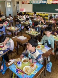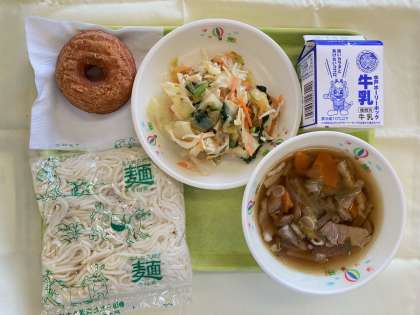 1年生は初めてのソフトめんでしたが、先生のお手本をよく見て、上手に等分して食べていました。今年は年1回から、2回に増えました。次は秋ごろの予定です。