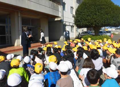 10月6日(金)、不審者対応避難訓練並びに引き渡し訓練を実施しました。緊急放送が入ると、どの学年も真剣に訓練に取り組むことができました。不審者侵入付近の2学年は、校舎外へ避難しました。緊急時における不審者への職員の対応を改めて確認し、児童の避難誘導等が行われました。