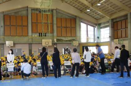 引き渡し訓練では、今回、自家用車の引き渡しを円滑にするためにICTを活用した受付を取り入れました。事前に情報教育主任を中心に全職員で校内研修を実施し、準備を進めました。また、多くの保護者の皆様に徒歩への引き渡しへと変更いただき、御礼申し上げます。徒歩での引き渡しがたくさんいらしたことで、周辺道路の混雑もなく、無事終了することができました。今回での訓練での課題を確認し、子供たちを守るためにさらなる安全対策に努めてまいります。