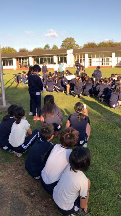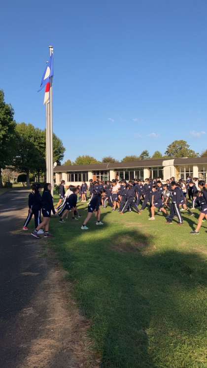 10月13日(金)、5年生は元気に起床し、部屋の片付けや清掃をしたあとに、朝のつどいを行いました。今日も雲一つない青空の下、楽しい時間を過ごしてほしいです。
