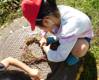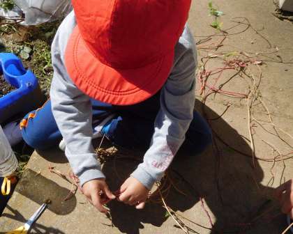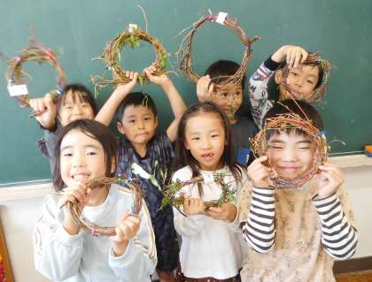 10月16日(月)、1年生は生活科の学習で、リース作りをしました。大切に育ててきたアサガオが、しっかりと支柱にからまった様子に、子どもたちも驚きながら、つるを集めていました。これから、リースに飾りつけするのを楽しみにしていました。