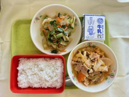 今日はいばらき美味しお献立でした。だしとキムチの辛味・酸味を生かした料理を取り入れました。10月の給食だよりでは、キムチ炒めを紹介していますので、参考にしてみてください。