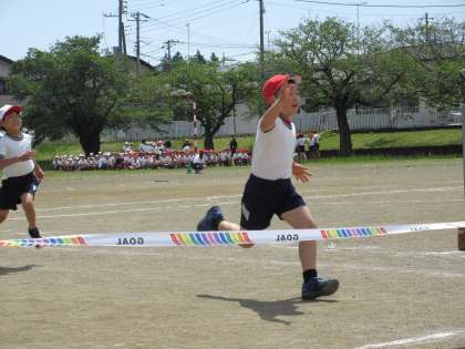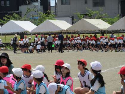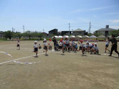 2年生の個人種目【ブリンランランボン】です。今年度から個人種目は全学年が徒競走となりました。また、各学年とも男女混合での競技となります。予行練習では2列目までが実際に走りました。