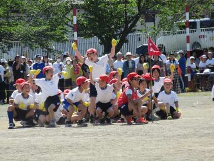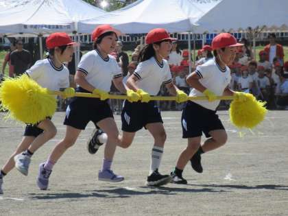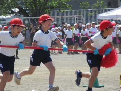 3年生の団体種目【外野ハリケーン】です。予行練習とは気持ちの入り方が違いました。どの組もスタートしてからとても速くゴールすることができました。力を合わせて競技ができました。