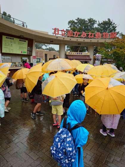 2年生は日立市かみね動物園に到着しました。雨が降り続いているとの報告を受けましたが、これからいろいろな動物を見学に行くところです。