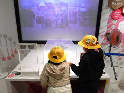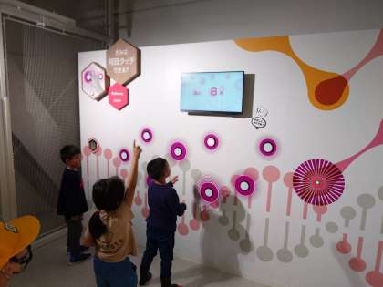 日立シビックセンターでの活動はとても楽しそうです。3D眼鏡をのぞいてみると、本当にその場にいるように見えたり、反射神経を試すところでは、光っている場所を探すのが大変だったりしています。