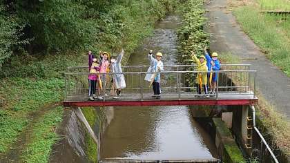 5年生は、奇跡的に雨がやみウォークラリーを行っています。児童は笑顔で出発していきました。