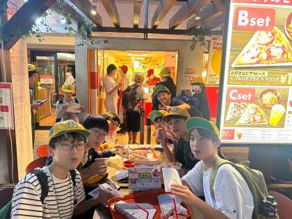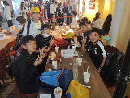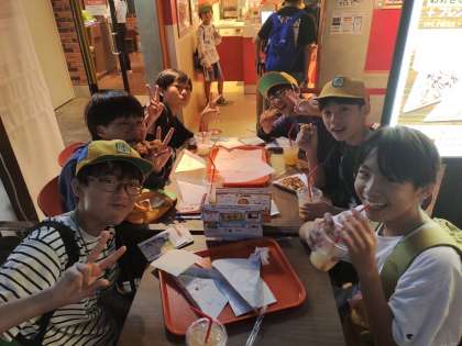 体験活動をしている児童の様子を見に行くと、すでに食事をしているグループがたくさんあります。お腹が空いているので、「おいしい」とうれしそうに話をしていました。