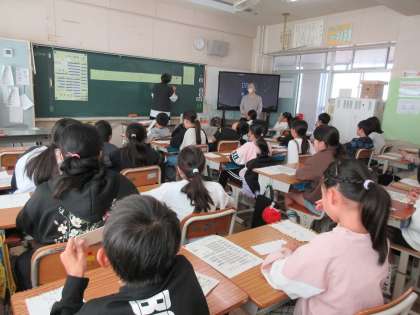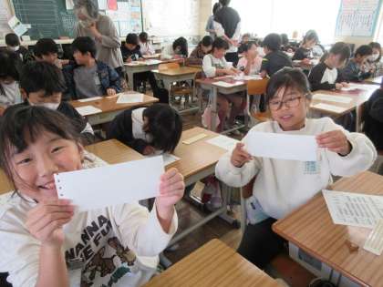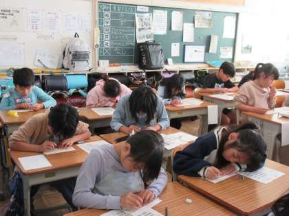 4年生は総合的な学習の時間の一環として、様々な福祉体験を行っています。今日は、点字体験です。指で点をさわって読むだけでなく、実際にどのように書くのかを体験しました。特別な道具を使って、決められた位置に針で点を刺していきます。初めはおそるおそるの子供たちでしたが、あっという間に慣れて、次々と点字を打っていました。「この道具はずれずに書けてすごい」「けっこう力がいるな」「見て!本当に点字ができた」と楽しそうに活動していました。点字を分かりやすく教えてくださった講師の先生方、ありがとうございました。