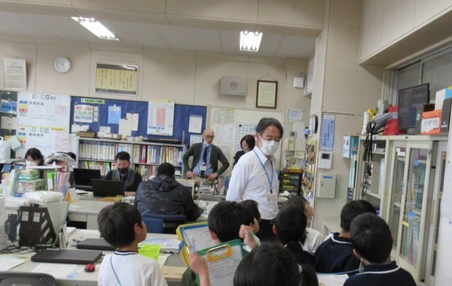 2年生が「失礼します」と言って、職員室に来ました。今度、生活科で1年生と一緒に学校探検に行くので、その下見にきたそうです。「防犯カメラがある」「メガホンみたいなものがある」「この長いのは、不審者が来たときに使うよ」などたくさんの発見をしていました。このあと、校長室にも行って校長先生とお話をしました。他にもいろいろな教室を見て歩きました。