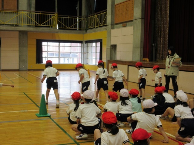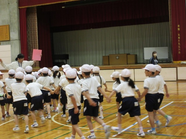 1年生は、まず並ぶ練習からです。説明をよく聞けたので、しっかり並ぶことができました。スタートの練習では6人が一斉に走りました。次の練習では校庭で本番と同じように走るのでしょうか。運動会、楽しみです。