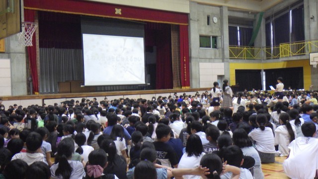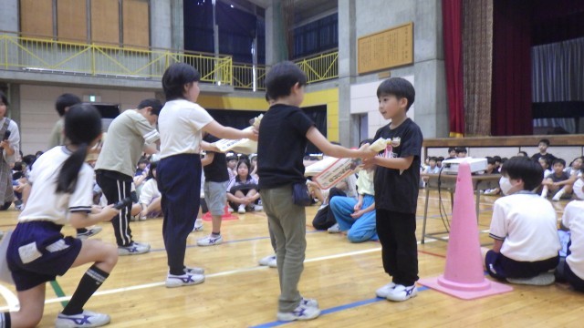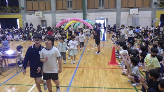 1年生を迎える会を行いました 公開日 2025/05/19 更新日 2025/05/19 学校生活のようす 1年生を迎える会を行いました。あたたかい拍手の中、6年生の案内で1年生が手をつないで入場します。花のアーチをくぐって1年生は嬉しそうでした。企画委員会でクイズを出したり、2年生が1年生にプレゼントを渡したりして、楽しい時間を過ごしました。1年生のお礼の言葉もしっかり言えました。少しずつ小学校に慣れてきた1年生。これからも仲良く楽しく過ごしていきましょう。 +4