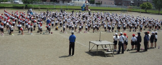 運動会に向けて全体で開会式練習をしました。とても暑い日となったので、途中水分をとり休憩をはさみながら行いました。さすが6年生は、元気な声で態度も立派でした。低学年のみんなも今日練習してみて、流れが分かったことでしょう。