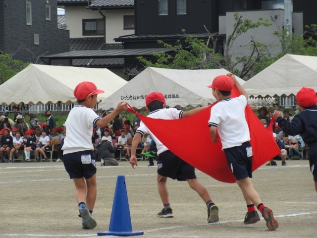 第43回運動会 公開日 2025/05/24 更新日 2025/05/24 学校生活のようす 天候にも恵まれ、第43回運動会が行われました。子供たちは一生懸命競技に臨んでいました。各学年の団体種目は、応援にも力が入り、特に盛り上がりました。喜んだり、悔しがったりいきいきとした子供たちの姿が見られました。校門周辺の見守りや低学年のいす片付け、テントの片付けなどたくさんのボランティアの皆さんのご協力もたいへんありがたかったです。ありがとうございました。 +1