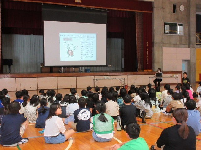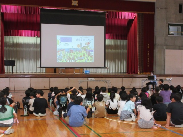 4年生を対象に講師の先生をお招きして、認知症サポーター講習会を行いました。認知症とはどんなことなのか、知らない児童もいる中、スライドを活用して分かりやすく説明してくださいました。将来、認知症の方に関わることになる児童も多いでしょう。そのときに、正しい対応ができるようにしておきたいですね。