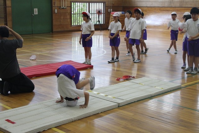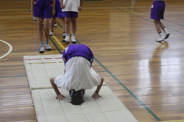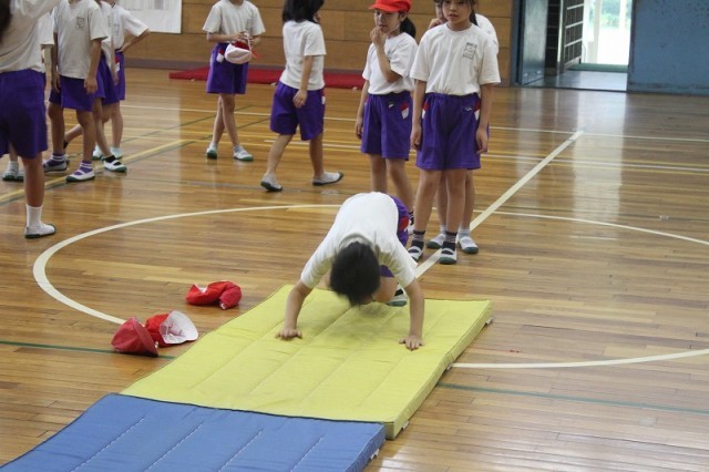 本日久しぶりに気温が下がったため、体育館でマット運動を行いました。昨年練習した、「前転、後転」に加え「側転」「開脚前転、開脚後転」なども実施しました。苦手な場合には、壁倒立や坂を使った後転を練習するなど、自分なりに努力していました。