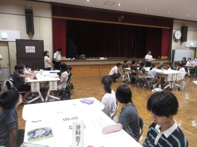 8月7日に笑顔サミット(児童生徒活動交流会)が行われ、本校からも代表児童が参加しました。サミットでは、グループごとに分かれて学校のルールについての意見交換を行い、全体に共有する活動を子ども主体で行われました。学校代表として、しっかりと交流する姿が素晴らしかったです。