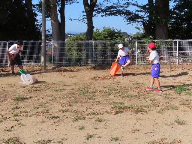 【4年生】グラウンドの落ち葉集め