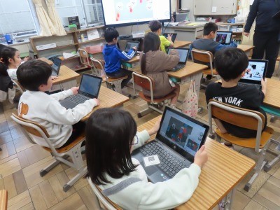 授業の様子(2年生) 公開日 2025/12/03 更新日 2025/12/03 2年生 2年生のプログラミングの学習です。ビスケットというプログラミングを使って、自分の絵をゆらゆら動かすにはどうしたらいいかを学習しました。子どもたちは、それぞれ動かしたい絵を考えて、試行錯誤をしながら、楽しく学習しました。