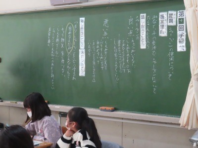 子どもたちは、良い点と悪い点について、積極的に意見を交わしていました。このように、自主的に、話し合う姿勢を大切にしたいです。