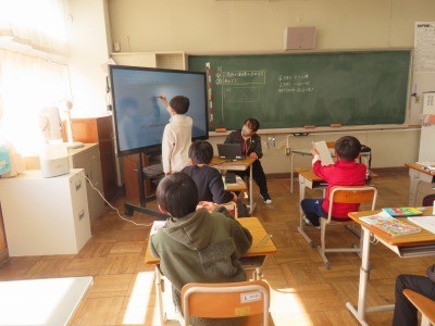 授業の様子(5年生) 公開日 2026/01/16 更新日 2026/01/16 5年生 5年生の算数で、三角形の面積はどのようにしたら求められるかを考えました。算数は、少人数のクラスもあり、2つに分かれて学習しています。子どもたちは、既習事項の、正方形や、長方形、平行四辺形の面積を使って、様々な考えを出して、説明をしました。