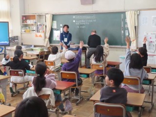 授業中に消しゴムを落としてしまった時など、いろいろな場面で、どのように言えばよいかを楽しく学習できました。学習を通して、あいさつの大切さを学ぶことができました。
