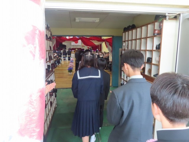 本日卒業式を挙行いたしました。1年生から4年生は教室のモニター越しに、5年生は体育館で参加しました。