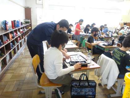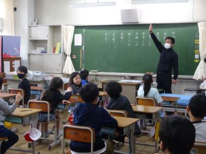 4年生は、みんなで学級の係を決めていました。また、5年生は、毛筆で「ふるさと」の練習をしていました。