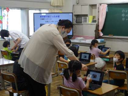 5月26日(木)、1年生のタブレット操作の学習が始まりました。今日は、ICTサポーターの先生にご指導いただきながら、基本の手順を学びました。子どもたちは、興味津々で、積極的に質問しながら取り組んでいました。