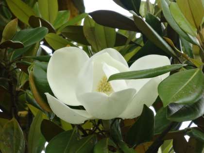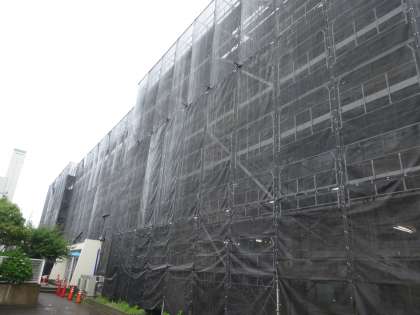 外壁塗装工事が進み、南校舎の北側の足場が外されました。明るくきれいになった校舎を見るととても嬉しいです。また、体育館とプールの施設の間に立っているタイサンボクの木に、大きな白い花が咲いているのを見つけました。