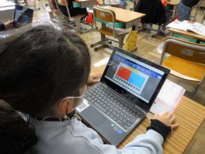 10月25日(火)、1年生もタブレット操作が上手にできるようになってきました。道徳の学習では、「こころメーター」で自分の考えを表していました。また、国語の漢字の学習でも活用していました。
