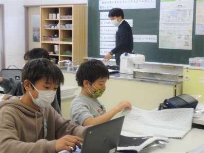 5年生は、体育の学習で、自分のハードルの跳び方をタブレットで確認しながら取り組んでいました。時間を遅らせて動画が流れるため、跳んだ後に観ることができ、練習もスムーズに行うことができていました。また、6年生は、トートバックやナップザックづくりで、ミシンの使い方を動画で確認しながら作業を進めていました。自分が知りたいところを個別に視聴し、安心して取り組むことができていました。