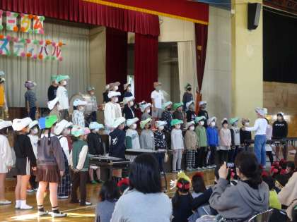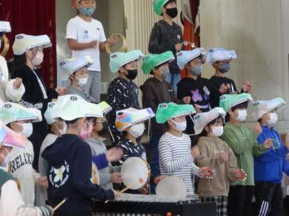 4年生の発表 公開日 2022/10/29 更新日 2022/10/29 お知らせ 4年生は、「怪獣のバラード」の合唱と合奏を発表しました。安定感のある元気な歌声と集中力のある力強い合奏が素晴らしかったです。