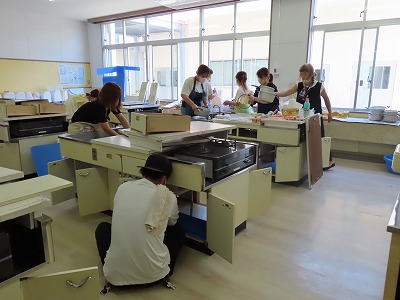 本日、第二回目の家庭科室ボランティア作業が行われました。十人以上の方が参加して下さり、棚の中や鍋を置く仕切りに、カットしたボードを敷く作業や、用具や台を洗ったり、磨いたりする作業をしました。