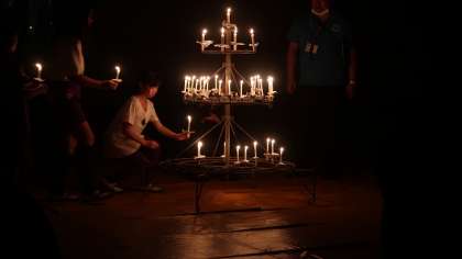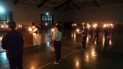 1日目夜のキャンドルファイヤーの様子です。普段とは違う雰囲気を味わったり、学年のみんなでダンスをしたりし、思い出深い夜になりました。